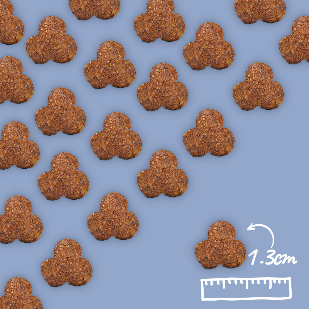 Składniki analityczne: białko surowe 25%, tłuszcz surowy 14%, popiół surowy 8%, włókno surowe 3%, wapń 1,6%, fosfor 1%, kwasy tłuszczowe omega-6 3,0%, kwasy tłuszczowe omega-3 2,9%