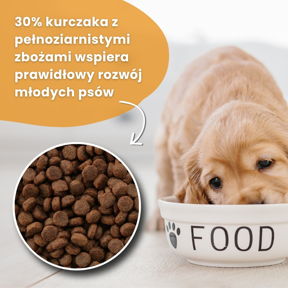 ✅ 30% mączki drobiowej (w tym kurczak) – lekkostrawne białko zwierzęce wysokiej jakości, wspierające rozwój i utrzymanie masy mięśniowej.