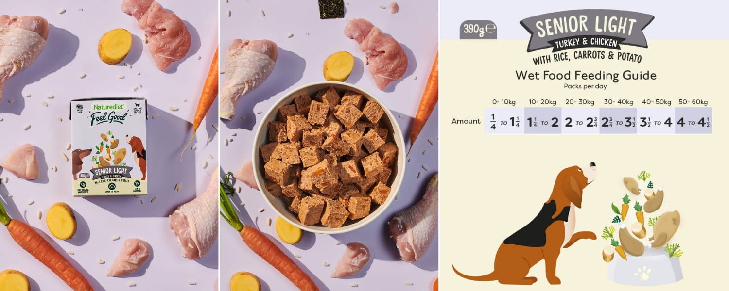 Naturediet Feel Good Senior Lite to smakowita mokra karma delikatnie gotowana na parze. Świeżo przygotowany indyk i kurczak z dodatkiem ryżu oraz ziemniaków i marchewki tworzy recepturę idealną dla psów dorosłych, starszych lub tych z nadwagą. To pełnoporcjowy, zbilansowany posiłek, który powstał wyłącznie z naturalnych, starannie dobranych składników odżywczych, wspierających zdrowie, kondycję oraz wygląd Twojego pupila. Do jego produkcji wykorzystuje się mięso odpowiednie również do spożycia przez ludzi. Składniki są delikatnie gotowane na parze, dzięki czemu gotowy produkt zachowuje więcej witamin i minerałów. Karma sprawdzi się u psów z wrażliwym układem trawiennym oraz skłonnych do alergii.