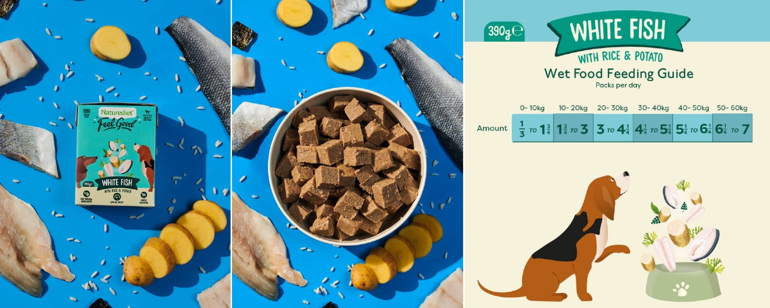 Naturediet Feel Good Fish to smakowita mokra karma delikatnie gotowana na parze. Świeżo przygotowana biała ryba połączona z ryżem i ziemniakami tworzy recepturę idealną dla dorosłych i starszych psów wszystkich ras. To pełnoporcjowy, zbilansowany posiłek, który powstał wyłącznie z naturalnych, starannie dobranych składników odżywczych, wspierających zdrowie, kondycję oraz wygląd Twojego pupila. Do jego produkcji wykorzystuje się mięso odpowiednie również do spożycia przez ludzi. Składniki są delikatnie gotowane na parze, dzięki czemu gotowy produkt zachowuje więcej witamin i minerałów. Karma sprawdzi się u psów z wrażliwym układem trawiennym oraz skłonnych do alergii. Dodatkowo jest to formuła o obniżonej zawartości tłuszczu, stworzona z myślą o czworonogach zmagających się z zapaleniem trzustki *.